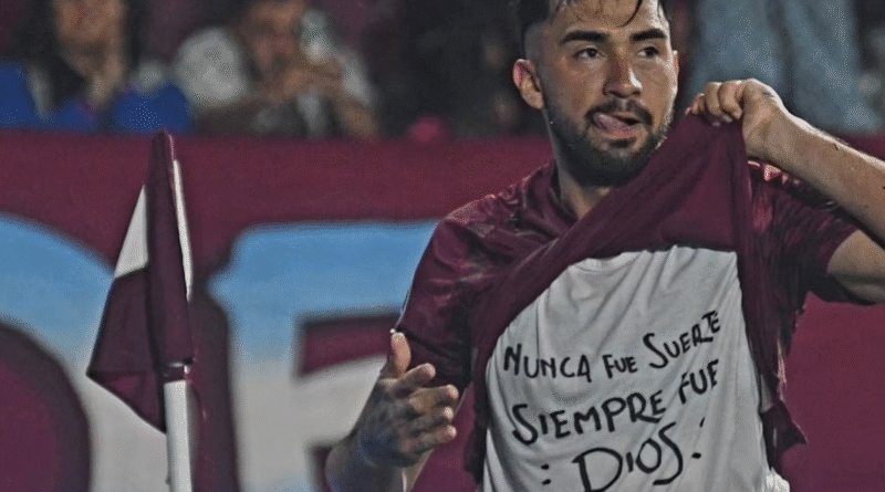 El volante argentino mostró una camiseta con el mensaje “Nunca fue suerte, siempre fue Dios”, acción que está prohibida por el reglamento.